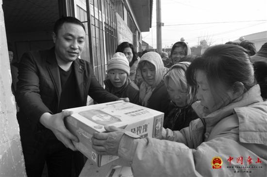 2015年12月31日,“两节”来临之际, 蓝贝酒业集团员工来到丰润区常庄镇指务村慰问村民,向300户村民赠送了价值58000元的蓝带啤酒和玫瑰花汁饮品等年货,受到乡亲们的热烈欢迎。蓝贝酒业集团热心公益事业,多年来积极组织参与各项帮扶困难户、捐资助学等公益活动。