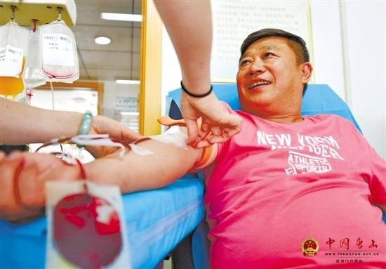 6月13日,河北省唐山市公安局路南区公安分局治安大队52岁的民警徐志民在唐山市中心血站无偿献血。他已连续16年无偿献血。