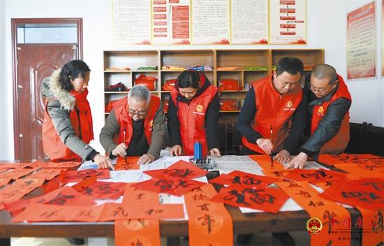 “传家有德惟淳厚,处事无奇但率真”“德仁家国三春暖,诚信门庭百世昌”“仁义忠孝传家久,诚敬勤俭年年丰”……1月15日上午,迁安市赵店子镇赵店子村党群服务中心内,翰墨飘香,一幅幅“道德春联”摆满了房间,彰显着新春的气息。为表彰道德模范,引领全社会向道德模范学习,该镇特意邀请了84岁高龄的老教师李奎宝等书法志愿者为全镇38位道德模范书写“道德春联”,春联写就后,这镇志愿者又将春联送到了道德模范的家中,同时为生活有困难的道德模范送去了米面等慰问品。