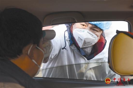 春节期间,我市广大干部职工积极应对新型冠状病毒感染的肺炎疫情,很多人坚守岗位一线,以高度的责任感和积极向上的精神风貌保障市民平安欢乐过节。图为在唐山机场高速口,体温检测人员正在对过往车辆人员进行体温检测,确保不漏一处、不落一人。