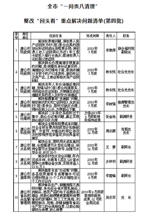 唐山公示"一问责八清理"整改"回头看"重点问题清单