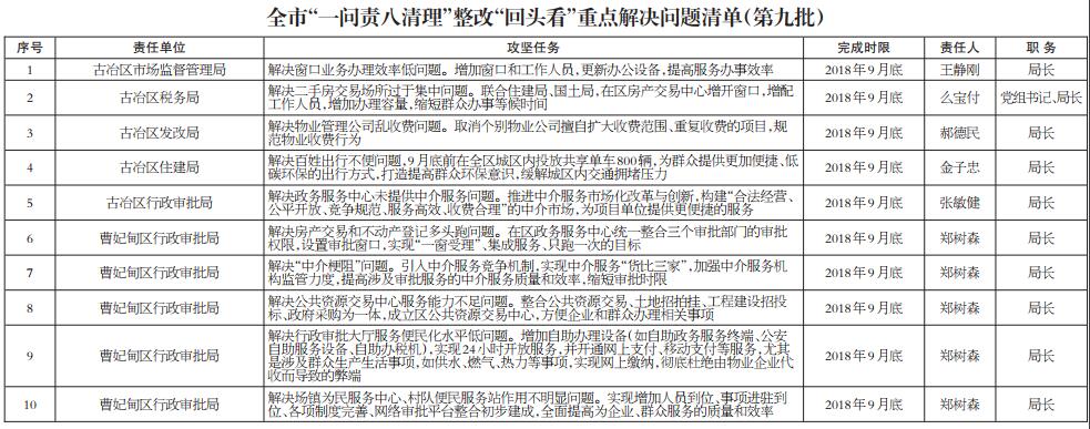 我市“一问责八清理”整改“回头看”重点解决问题清单公示