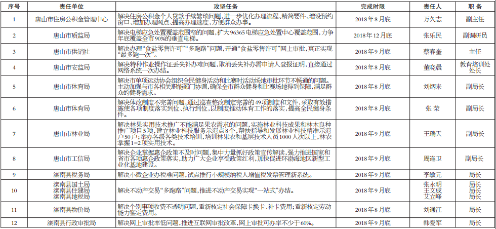 为进一步推动全市“一问责八清理”整改“回头看”向纵深发展,经市领导小组决定,在全市开展为期三个月的“找准问题症结、合力集中攻坚专项行动”,确实解决一批社会关注度高、企业和群众所忧所盼所急的热点、难点问题,更好地提升企业和群众的获得感,进一步打造“四最”营商环境。现将纳入攻坚行动的第十一批任务清单予以公示,作出承诺,接受社会各界监督,监督电话0315-2806366。